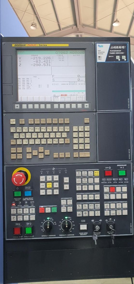 - 규격 FANUC 0i-MD, AICC2, 에어블로우, 오토파워오프 BT40, 12000RPM(직결식), ATC 30EA, 스핀들오일쿨러, 칩컨베이어/칩통