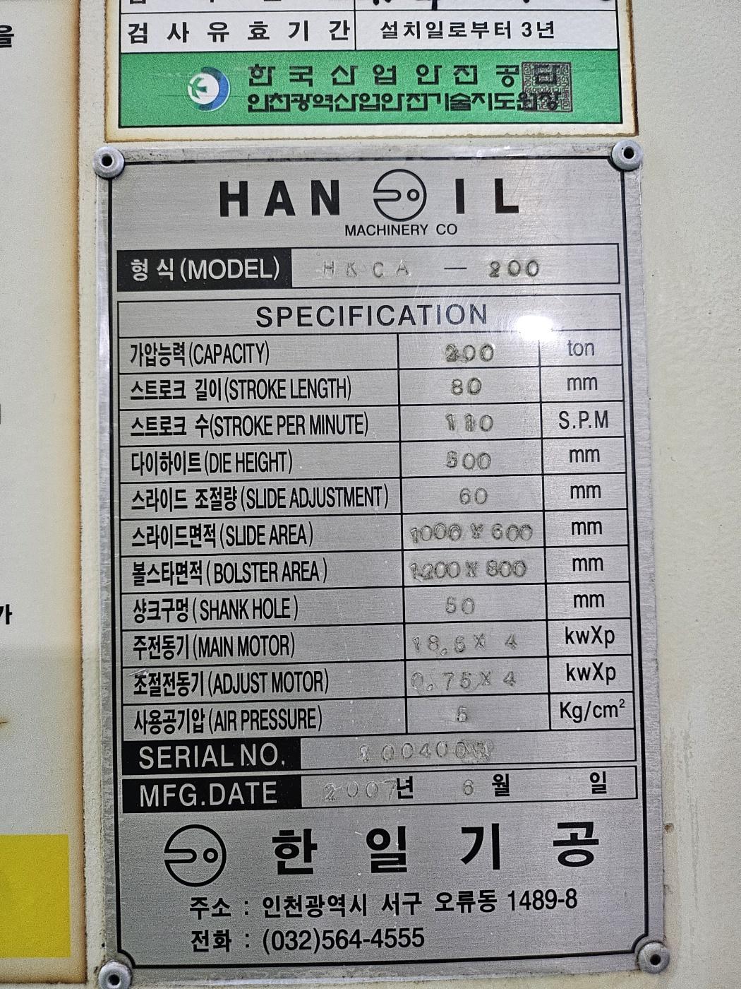 한일 너클프레스 200톤 (2007년 6월)