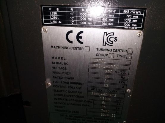 CNC선반(L280L, 2013년, 심압대, Q센타)