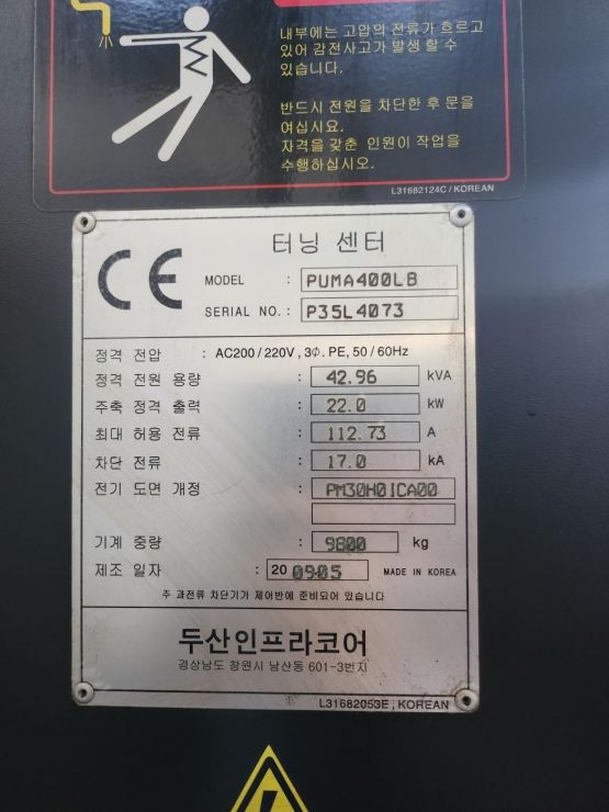 가격협의두산 CNC선반 PUMA-400LB