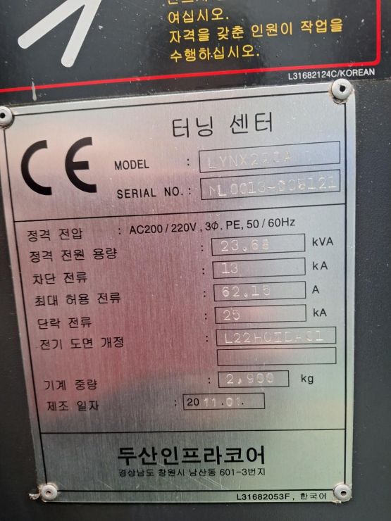 두산 6인치 CNC선반 LYNX220A 중고CNC선반