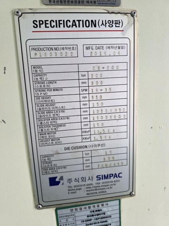 심팩 프레스 200톤 CS-200 (2016년 6월) 5식