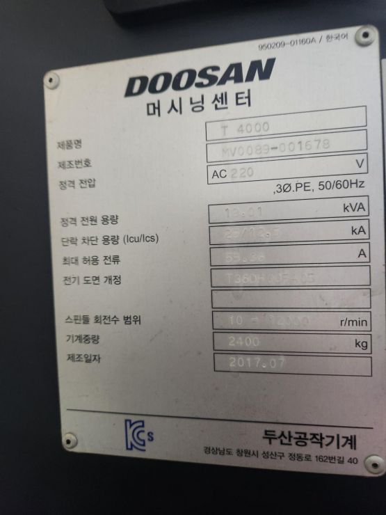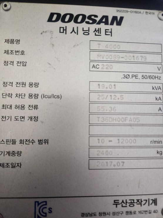 두산 탭핑센터 T4000 12K (2017년 7월) 동일사양 2식