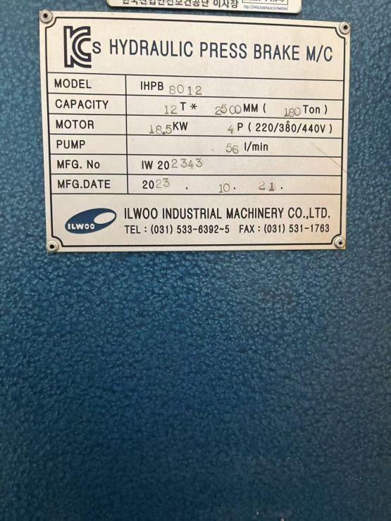 일우 CNC절곡기 12T/2500