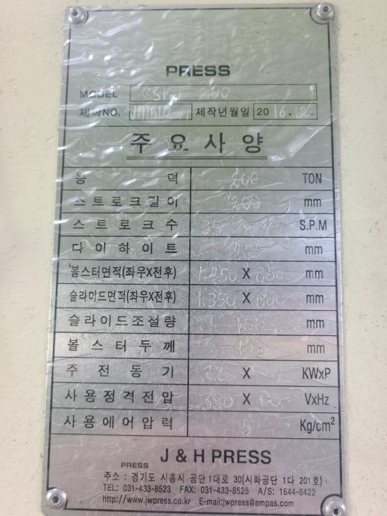 - 규격 스트로크 200/ 다이하이트 455/ 인버터타입 / 습식클러치