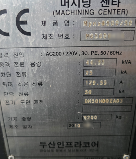 수직 머시닝센타 (DOOSAN,Mynx 6500/50)