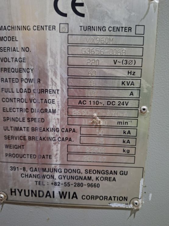 현대위아 9호 머시닝센터 VX960M 중고머시닝센타