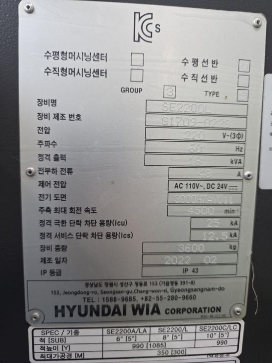 가격협의현대위아 CNC선반 SE-2200L