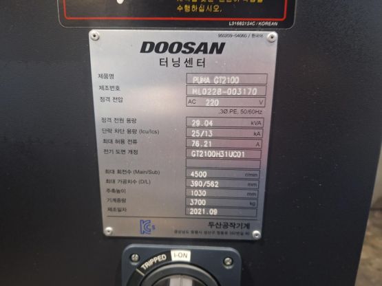 두산 8인치 CNC선반 PUMA GT2100 중고CNC선반 (2대보유), 실사용1770시간