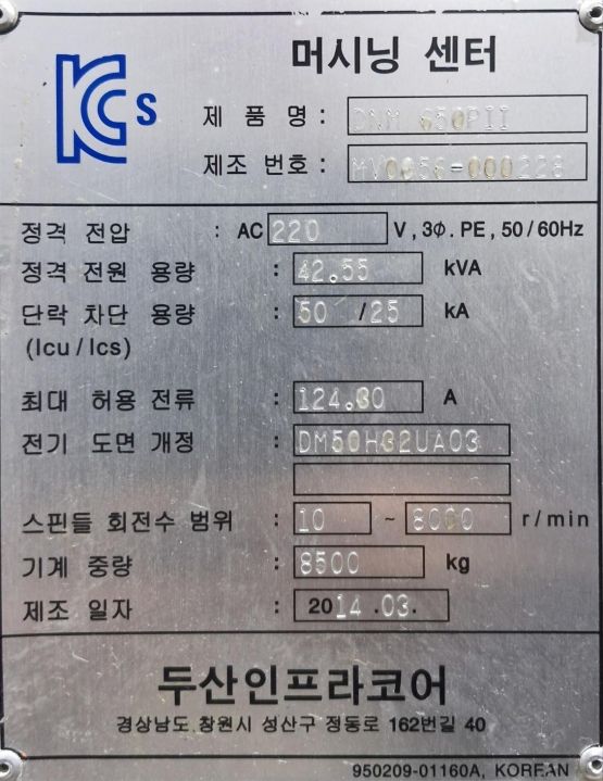 두산 6.5호 머시닝센터 DNM650PⅡ 중고머시닝센타