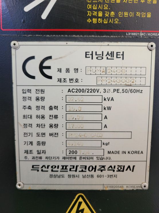 장비명 : PUMA 240B, 8인치 CNC선반