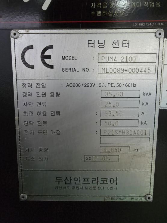 장비명 : PUMA2100(2대), 8인치 CNC선반