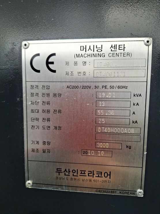 두산 탭핑센터 DT400/12K 중고탭핑센터