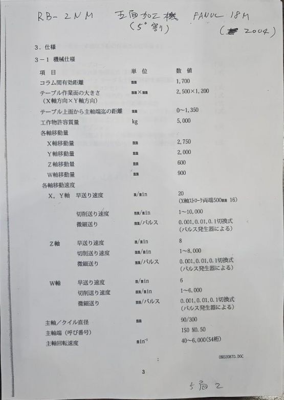 스트로크 : X-2,750mm, Y-2,000mm, Z-600mm, W-900mm