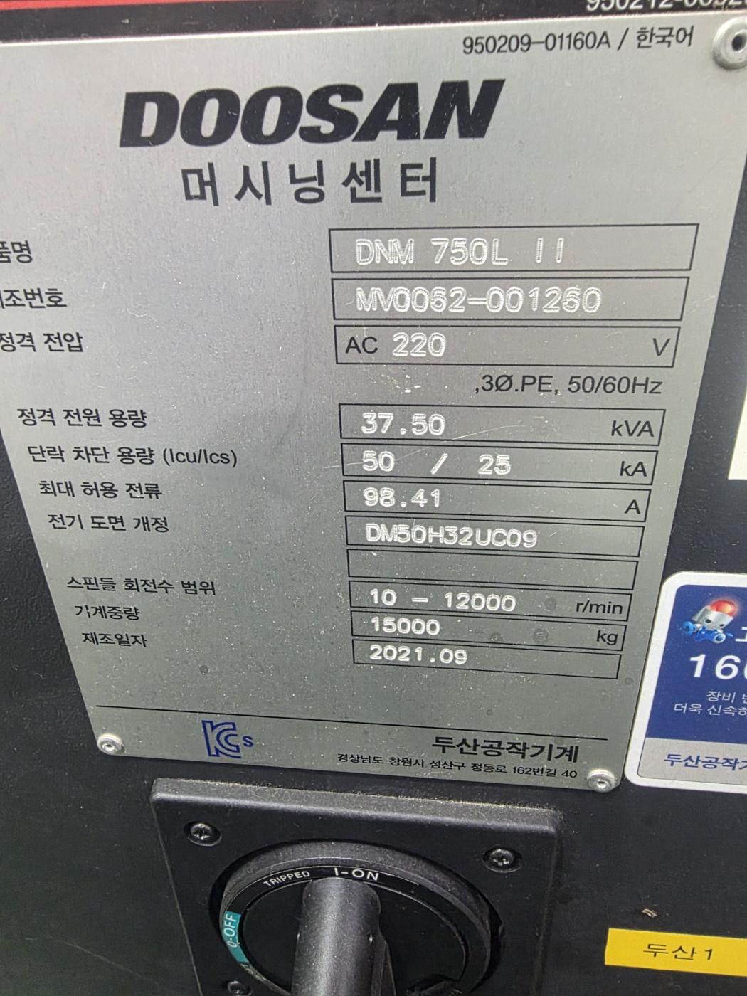 두산 머시닝센터 DNM750LⅡ 장축 12000RPM (2021년 9월) 동일사양 2식