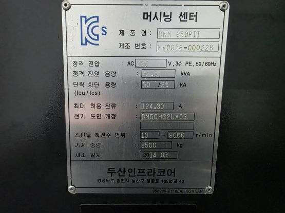 두산 6.5호 머시닝센터 DNM650PⅡ 중고머시닝센타
