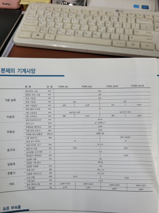 장비명 : PUMA 280, 두산 10인치