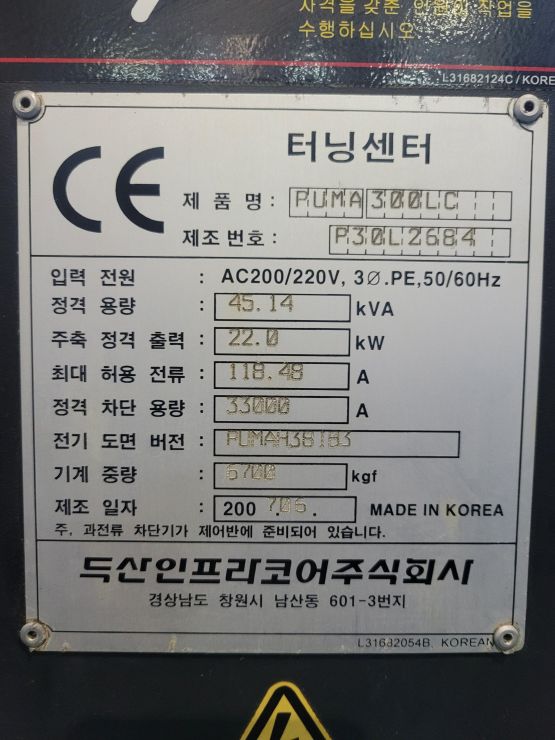 장비명 : PUMA 300L, 12인치 롱타입 선반