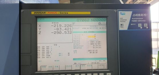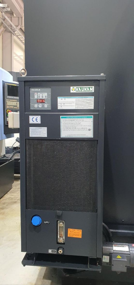 - 규격 FANUC 0i-MD, AICC2, 에어블로우, 오토파워오프 BT40, 12000RPM(직결식), ATC 30EA, 스핀들오일쿨러, 칩컨베이어/칩통