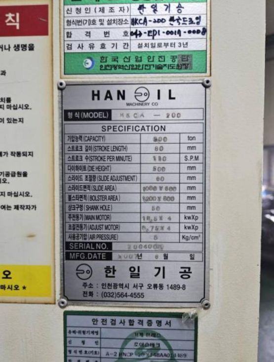 한일 너클프레스 200톤 (2007년 6월)