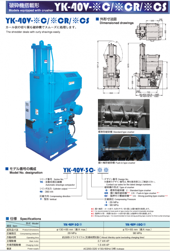 ★.일본에서 수입 준비중인  밀링,선반 ,보링기등 에서 가공시 발생되는 칩을 압축성형 하는 압축기입니다.