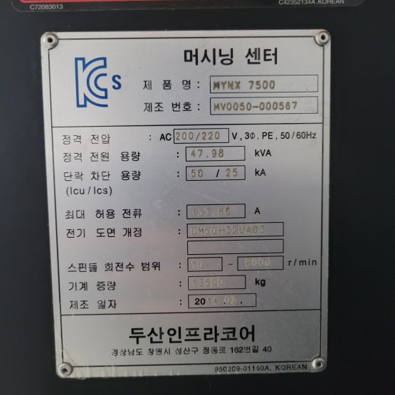 장비명 : MYNX7500 7.5호기 머시닝