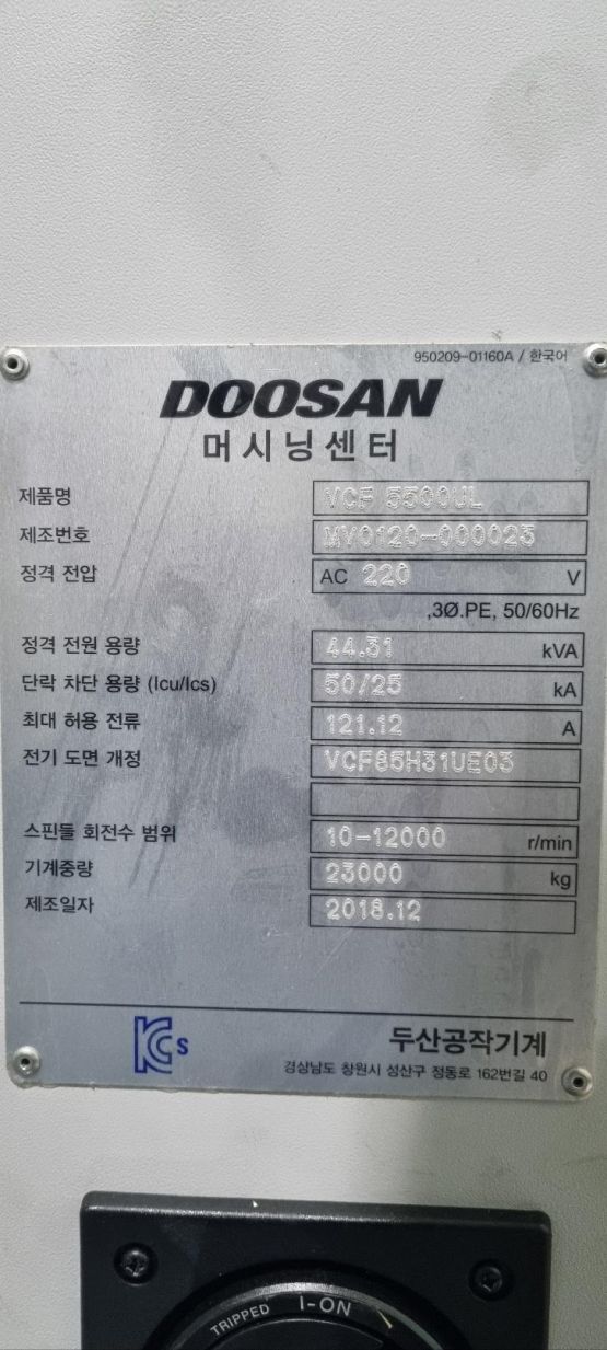 두산 프로파일 가공기 VCF 5500UL