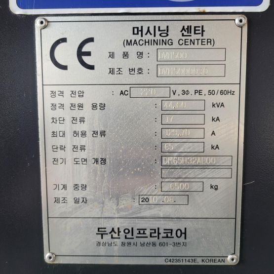 장비명 : DVM500, 5호 고속가공기
