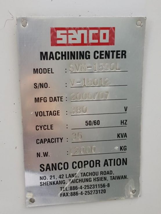 싼코 8호 머시닝센터/준고속가공기 SVM-1500L 중고머시닝센터