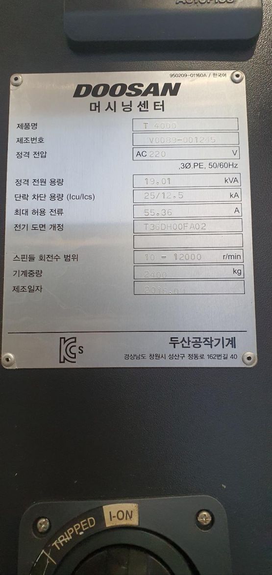 두산 탭핑센터 T4000/12K 중고 탭핑센터