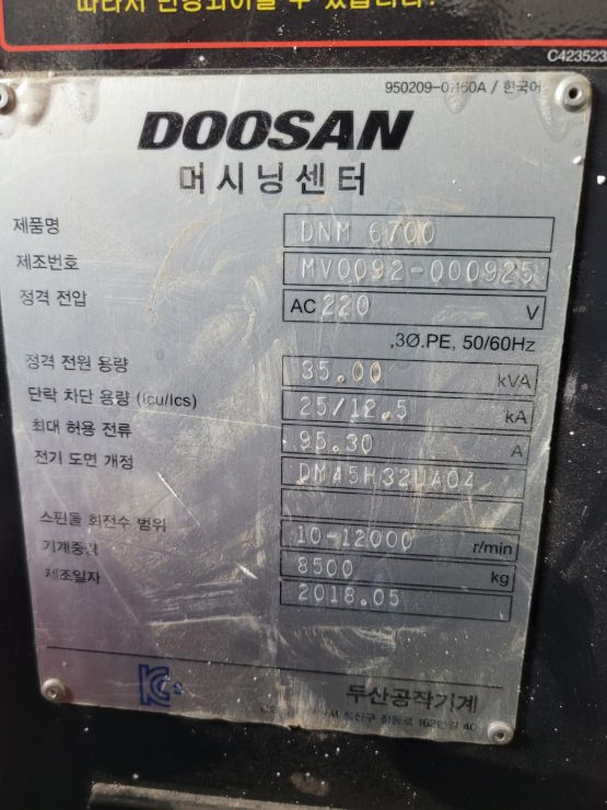두산 6호 머시닝센터 DNM6700 중고머시닝센타