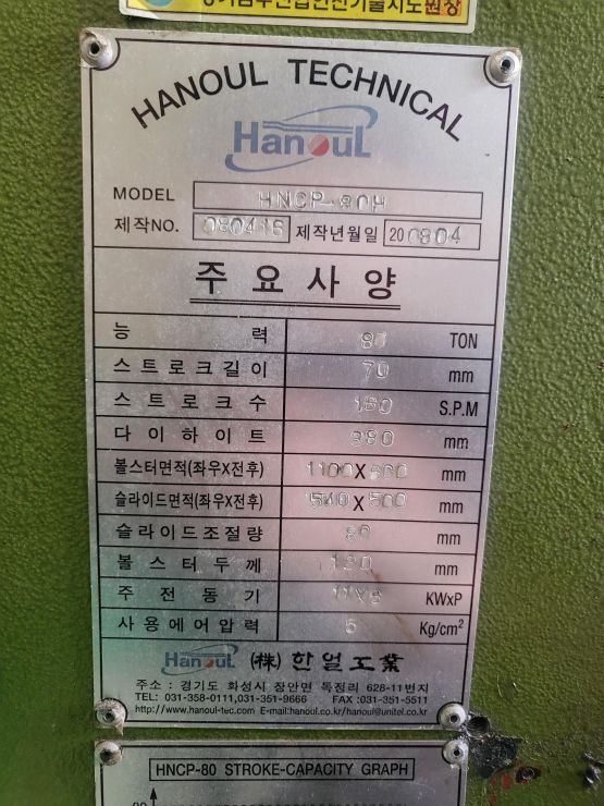 "(주) 세광기계 " 한얼 HNCP-80H 프레스 판매 합니다.