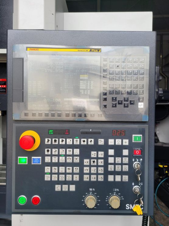 - 규격 FANUC 0i-MF, AICC2, 에어블로우, 오토파워오프 BT40, 10000RPM, ATC 24EA, 공구길이측정장치(레니쇼우), 칩컨베이어