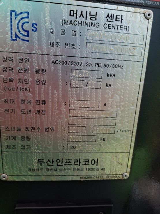 두산 5호 머시닝센터 MYNX5400 밍스5400 중고머시닝센타