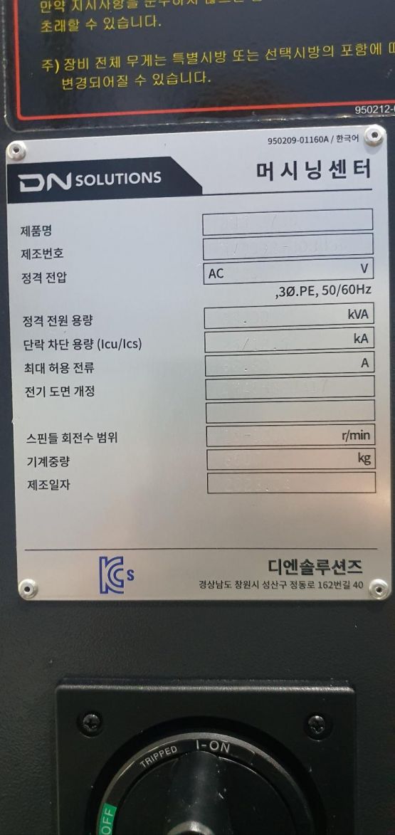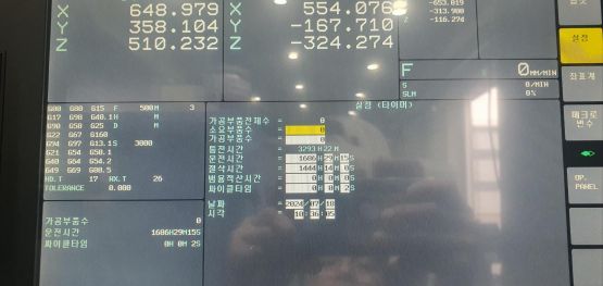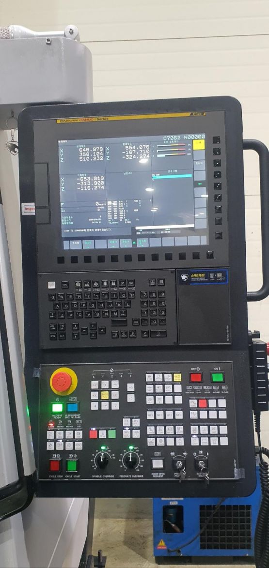 - 규격 FANUC 0i-MF, AICC2, 에어블로우, 오토파워오프 BT40, 12000RPM(직결식), ATC 30EA, 스핀들오일쿨러, 칩컨베이어(우측방)/칩통 삼천리 파워바이스 5개