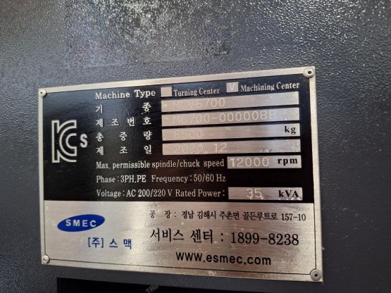 스맥 6호 머시닝센터 MCV6700 중고머시닝센터
