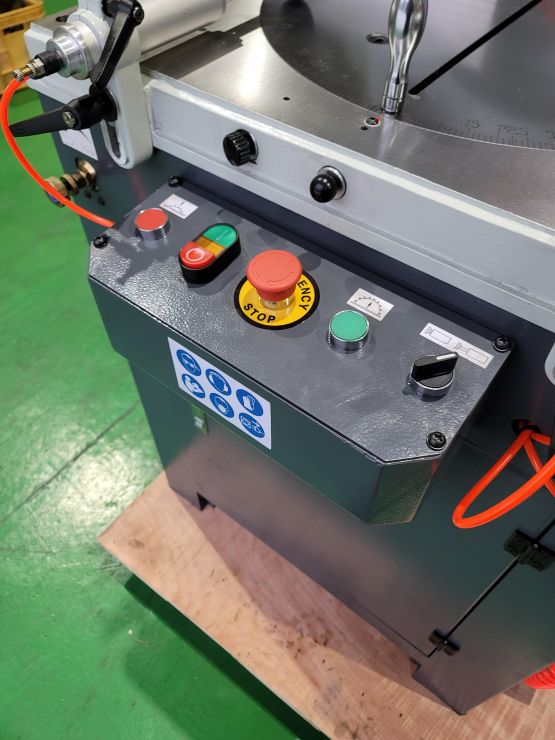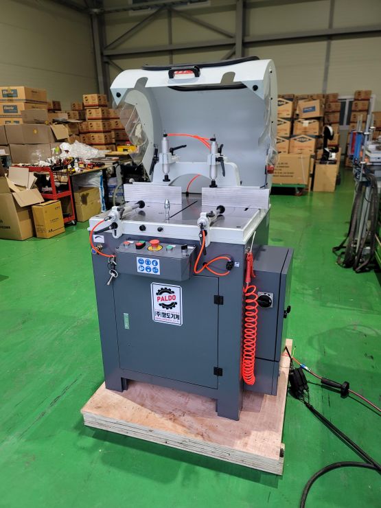 | 제품상세설명 | 고정밀 알루미늄 각도절단기입니다. 400파이 톱날이 장착되고, 모터는 1.5마력, 2800RPM, 380볼트 3상입니다. 절단면 100*100mm 소재를 직각 절단 및 45도 절단 가능합니다. 총 4개의 바이스 클램프가 소재를 견고히 지지합니다. 오일미스트 분사장치 장착되어 있습니다. 안전커버가 있어서 안전한 절단이 가능합니다. |