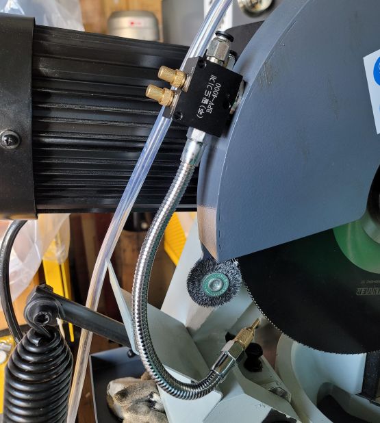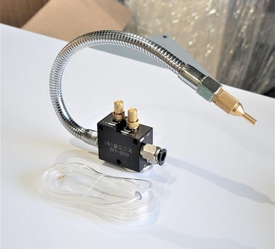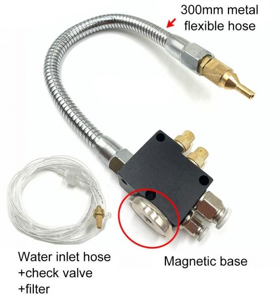| 제품상세설명 | *강력 자석 장착으로 탈부착 편리. *금속 자바라 사용으로 쉽게 파손되지 않고, 에어가 세지 않습니다. *에어량 및 절삭유량이 따로 따로 조절이 됩니다. *절삭유, 알콜, 미스트오일 모두 사용 가능합니다. *사용분야 -프레스, 머시닝센터, CNC선반, 밀링, 톱기계, 밴드쏘, 알루미늄절단기, 보루방 등 각종 공작기계. 자바라 길이 = 300mm 필요한 공기 압력: 5-7kgt/cm 적용 가능한 액체 점도: 0-68cSt 분사구 직경: 2.0mm 에어 입구 피팅 크기: 8mm 액체 입구 피팅크기 : 4mm PU 튜브 길이: 1.5m |