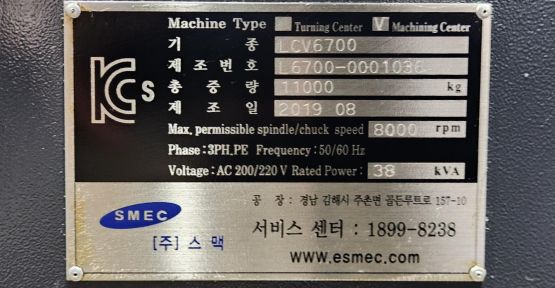 스맥 6.7호 머시닝센터 LCV6700 (2019년식)