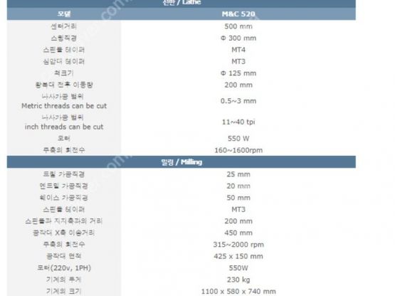 소형 탁상 복합 선반/밀링 M&C-520