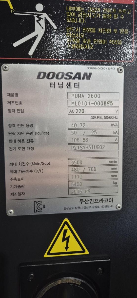 두산 10인치 CNC선반 PUMA2600 중고CNC선반