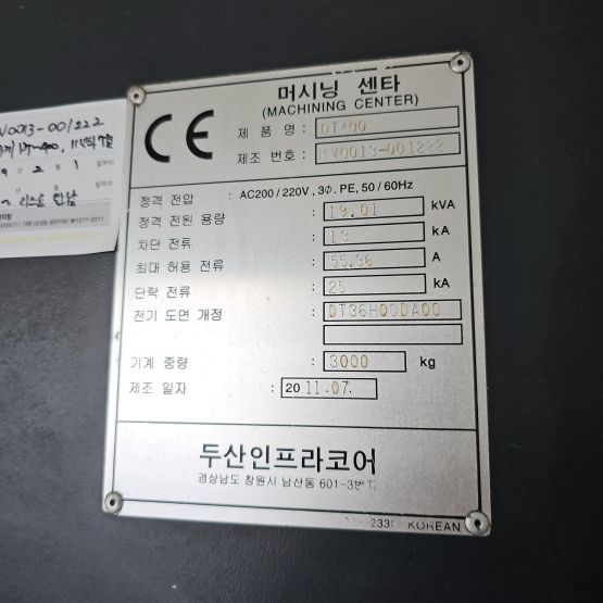 • 제조회사 두산인프라코어