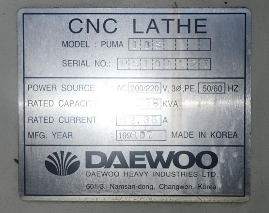 두산 10인치 CNC선반 PUMA10S (1998년식)