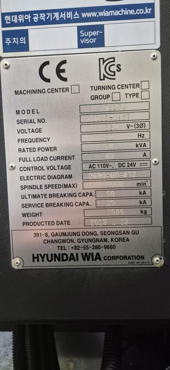 현대위아 5호 머시닝센터 F510B 중고머시닝센타