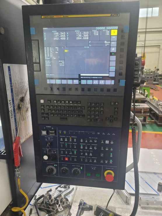 - 규격 FANUC 0i-MF, AICC2, 데이터서버, 에어블로우, 오토파워오프 BT40, 10000RPM, ATC 30EA, 주축냉각장치, 칩컨베이어/칩통