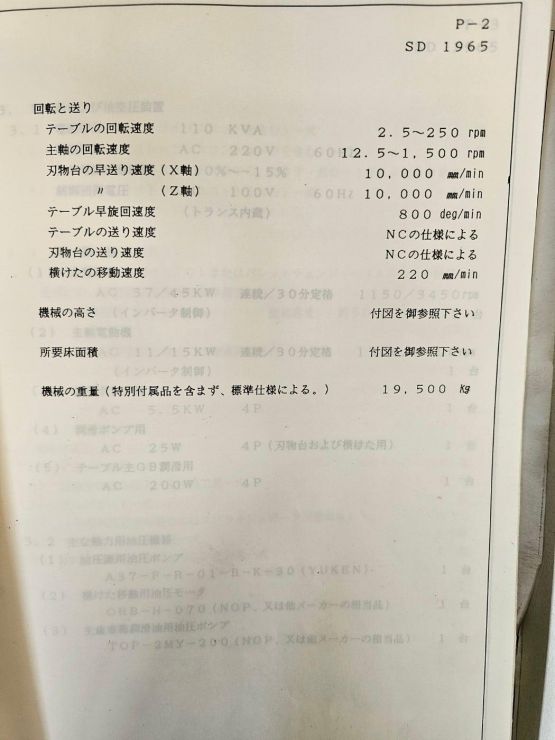 ㅡ.주축회전속도 : 1,500RPM