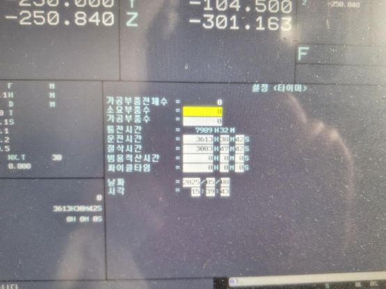 - 규격 FANUC 0i-MF, AICC2, 데이터서버, 에어블로우, 오토파워오프 BT40, 12000RPM, ATC 30EA, 스핀들오일쿨러, 공구길이측정장치(레니쇼우), 칩컨베이어/칩통