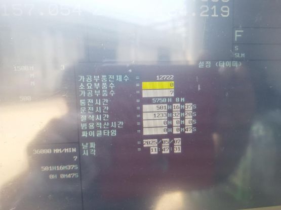 - 규격 FANUC 0i-MF, AICC2, 데이터서버, 에어블로우, 오토파워오프 BT40, 10000RPM, ATC 30EA, 공구길이측정장치(레니쇼우), 주축냉각장치, 칩컨베이어/칩통