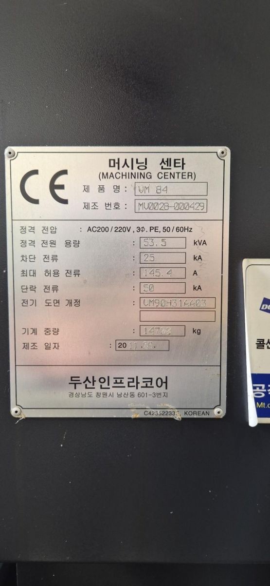 두산 8호 머시닝센터 VM84 중고머시닝센타