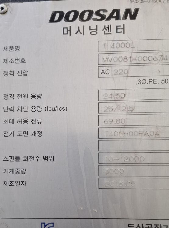 두산 장축 테핑센터 T4000L